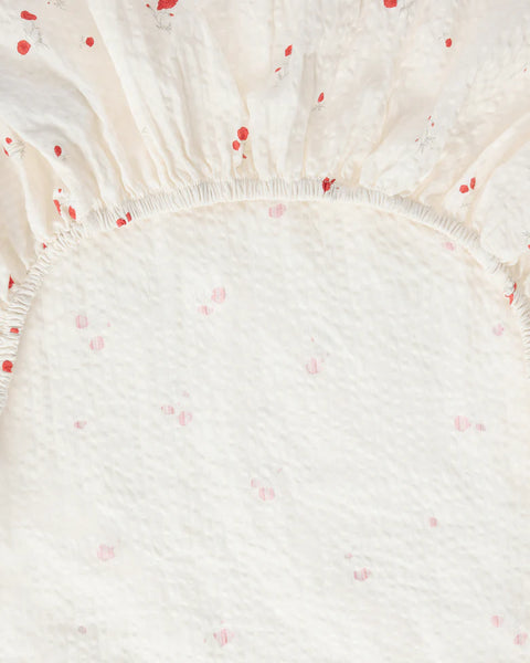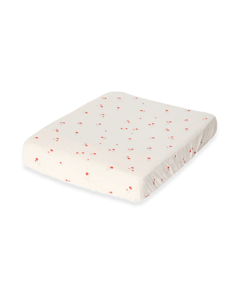 This changing mat cover is made to fit most standard changing mats. Made from beautifully textured and soft organic cotton seersucker that adds an extra dimension to the simplistic Poppy print. The elastic hem wraps around the changing mat and makes it easy to put on and take off when it's time to wash.