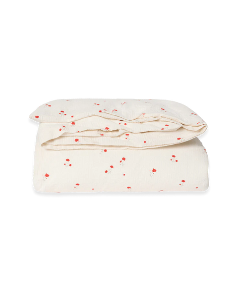 The duvet cover is made from beautifully textured and soft organic cotton seersucker that adds an extra dimension to the simplistic Poppy print.