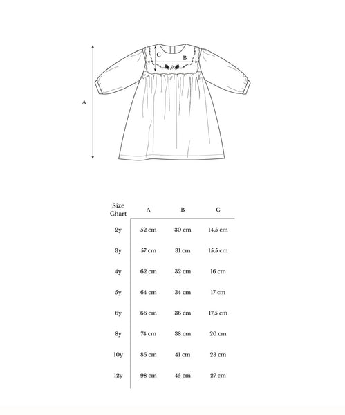 Vintage inspired Clementine dress in nostalgic red floral print. Features a truly beautiful silhouette, vintage inspired square bib collar with signature floral embroidery, and long puff sleeves. Crafted from softest organic cotton. Back closure with a mother of pearl buttons.