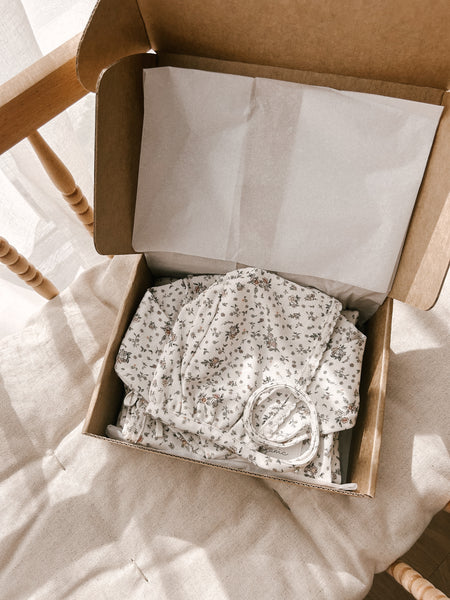 Thoughtfully curated with Bebe Organics Fall Praire delicate floral, this set includes;