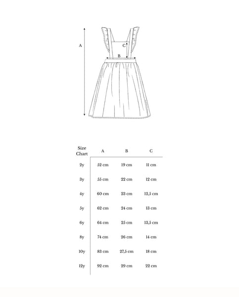 Adorable apron style features delicate geometric flower print, elegant A-line silhouette, adorable crossed back straps, and hemline with contrast crochet lace detailing.