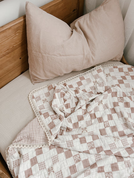 Ellie + Layne Big Kid Blanket - Pink Bows and Gingham