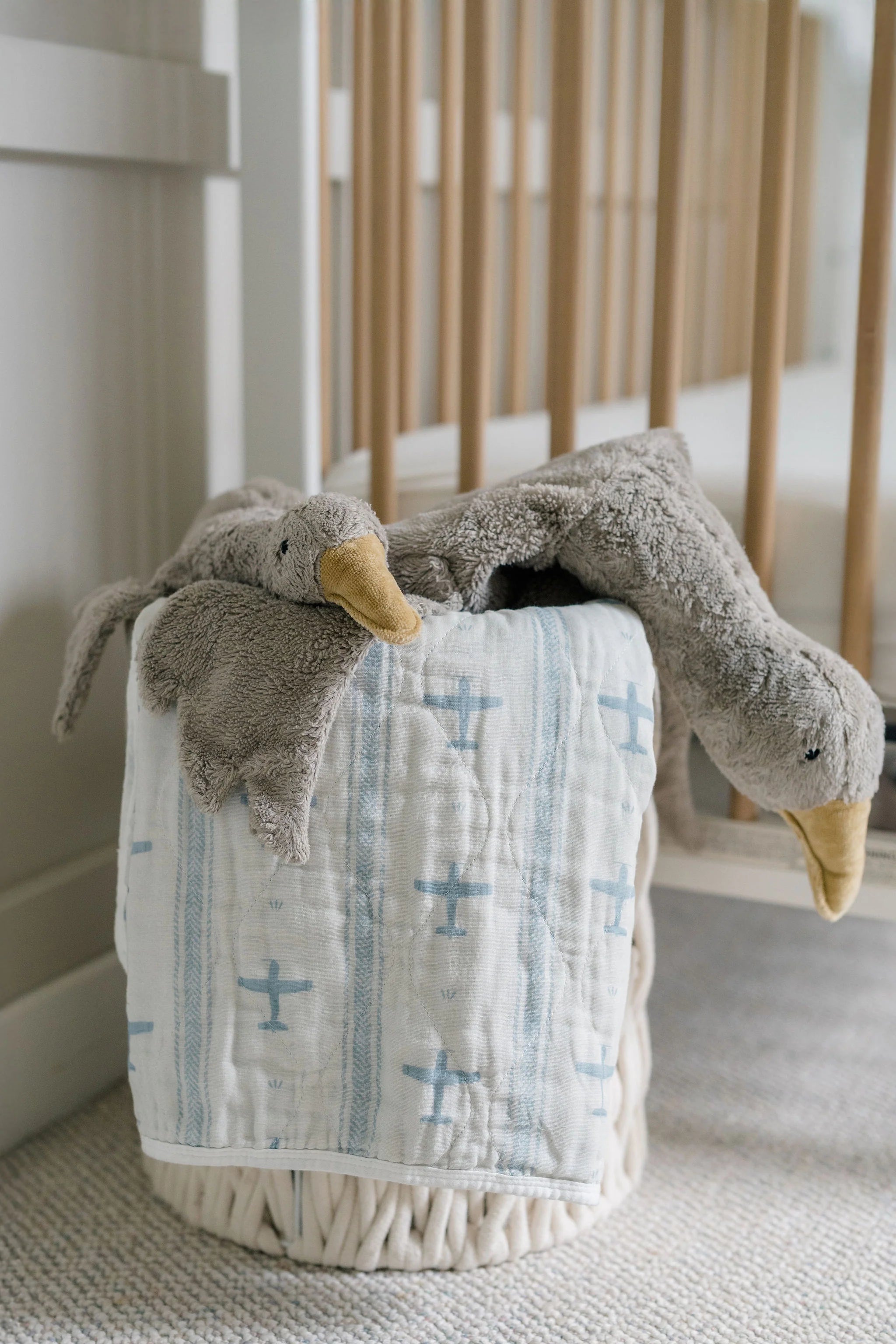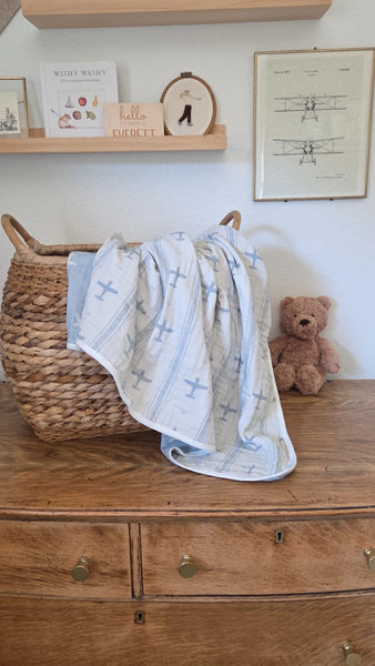 Ellie + Layne Vintage Airplanes Quilted Gauze Blanket